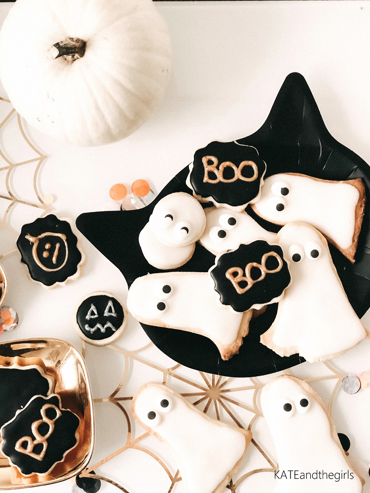 Die Geisterkekse habe ich freihändig aus dem Teig ausgeschnitten. Das geht wirklich supereasy und meine Kids waren begeistert.