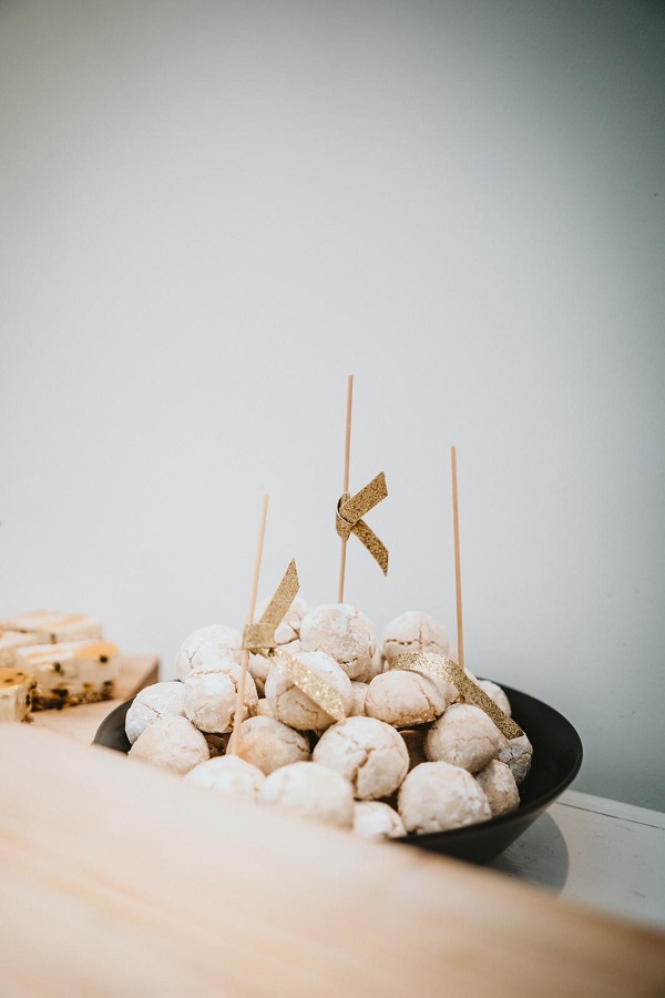 Davon mit 2 Teelöffeln walnussgroße Portionen nehmen, vorsichtig zu Kugeln formen und in Puderzucker wälzenDie Kugeln mit etwas Abstand auf ein mit Backpapier belegtes Backblech setzen und bei ca 170 Grad ca 17-20 Minuten backen.