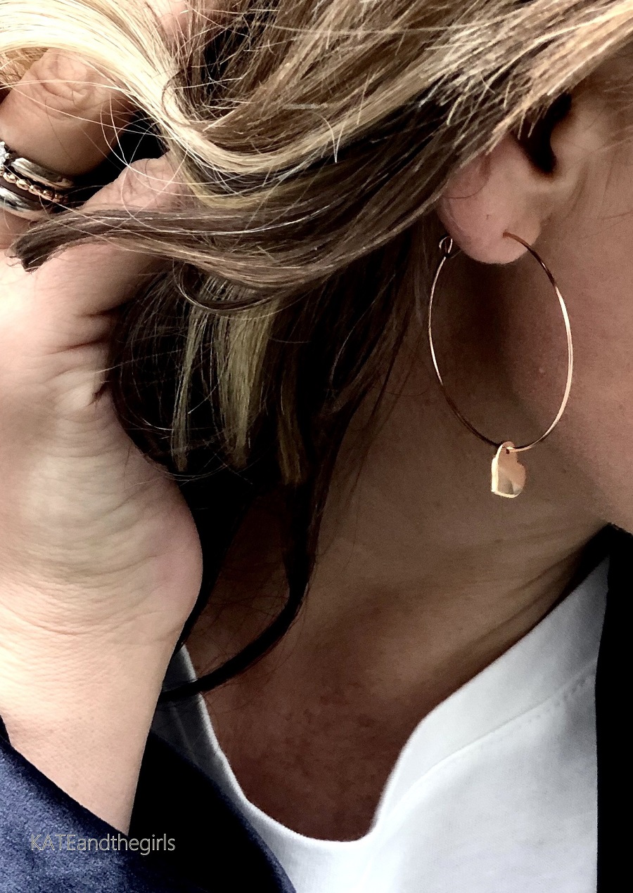 Die Creolenohringe, an denen Herzchen baumeln, schenkten mir Freundinnen zu Weihnachten.