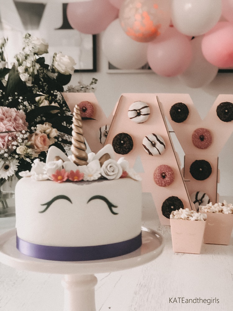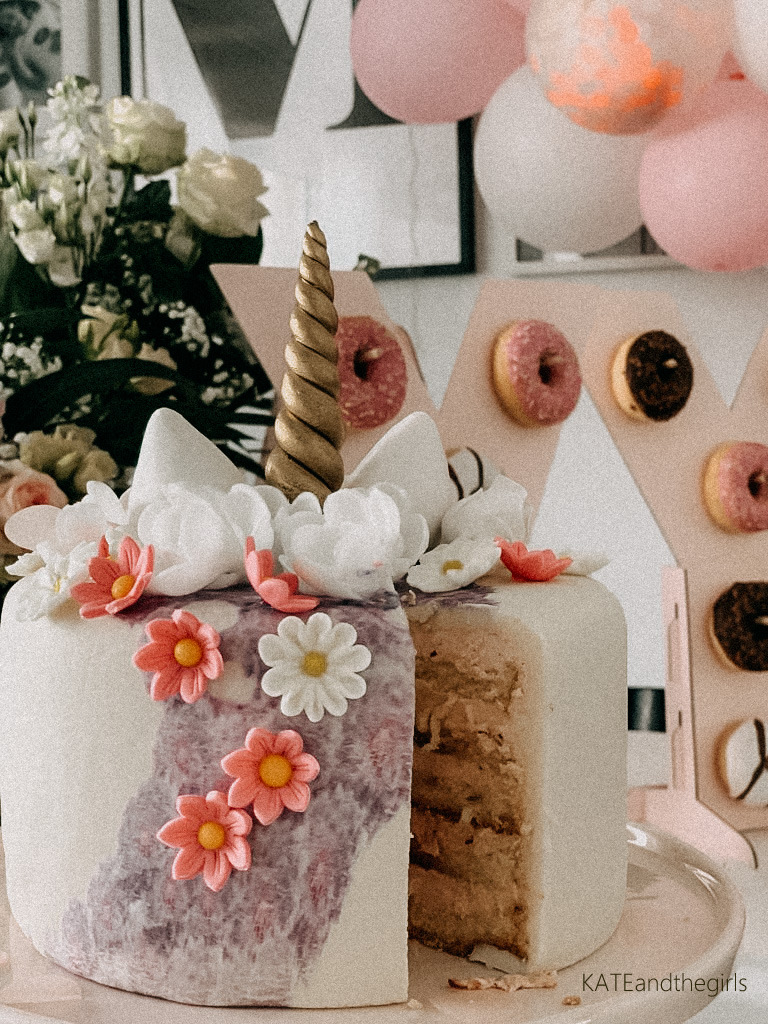 EinhornTorte mit Wimperklimper , köstlicher Vanille-Himbeerfüllung und  frischer Marmelade.