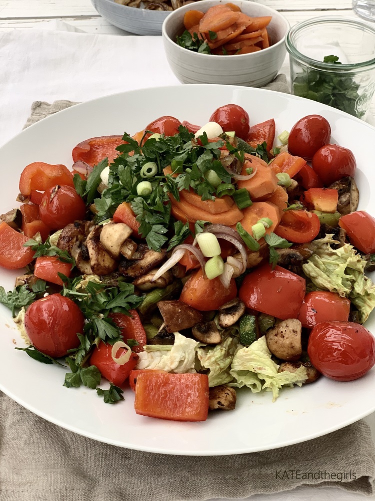 Der Mai brachte mir auch viel Inspirationen für neue Rezepte. Low Carb steht bei mir aktuell ganz oben auf der Liste. Alles muss bei uns immer „familienkompatibel“ sein: eine Mahlzeit für mich, für den Rest der Familie eine Beilage. Ihr könnt es also halten, wie es in euren Alltag passt. Es ist für jeden was dabei. Alle Rezepte sind schnell am Abend zuzubereiten, nur der Gemüsesalat ist etwas aufwendiger, aber nur der vielen Zutaten wegen. Nichts davon endet in einer „Riesenaktion“.